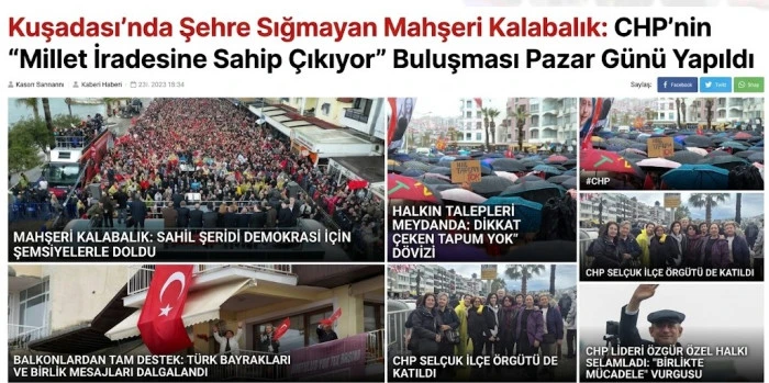 CHP'nin, "Millet İradesine Sahip Çıkıyor" mitinginleri Pazar günü Kuşadası'nda yapıldı. Yağmura rağmen mitinge katılım yoğun oldu. Mitingde CHP Genel Başkanı Özgür Özel açıklamalarda bulundu.