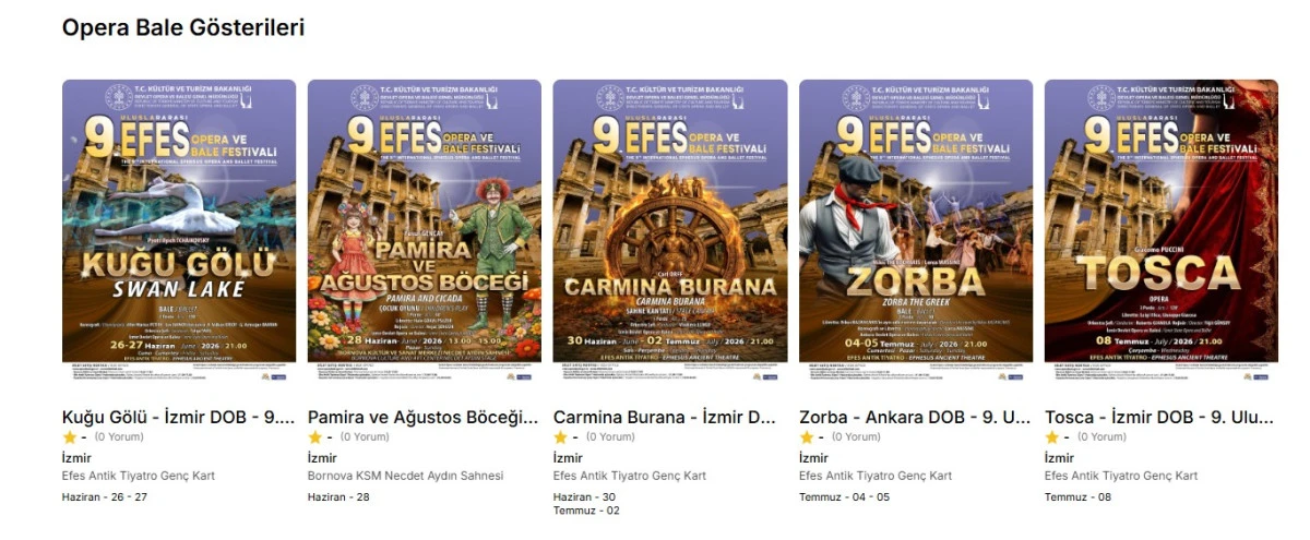 Tarih ve sanatın kucaklaştığı, dünyanın en prestijli etkinliklerinden biri olan Uluslararası Efes Opera ve Bale Festivali, bu yıl 9. kez sanatseverlerle buluşmaya hazırlanıyor. 26 Haziran - 8 Temmuz 2026 tarihleri arasında gerçekleşecek festival, hem yerli hem de yabancı turistlere unutulmaz bir kültür şöleni yaşatacak.
