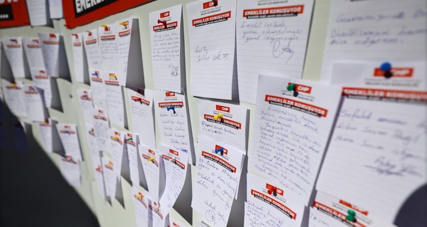 CHP Efes Selçuk İlçe Örgütü, Zafer Mahallesi’nde kurulan Çarşamba Pazarı’nda emeklilerle buluştu. “Emekliler Konuşuyor” etkinliğinde hazırlanan panoya dertlerini yazan vatandaşlar, ekonomik darboğazın ve eriyen maaşların hesabını sordu.