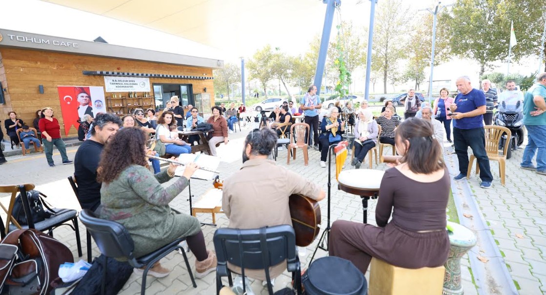 Efes Tarlası Yaşam Köyü’nde İzmir Müzisyenler Derneği tarafından düzenlenen “Kaybolan Notalar ve Tohumlar” isimli müzik dinletisi, pazarı ziyaret edenlere keyifli dakikalar yaşattı.
