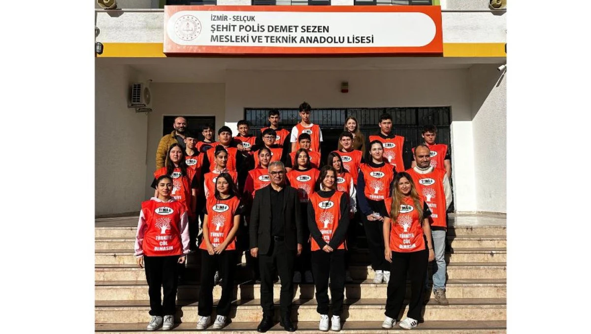 Selçuk Şehit Polis Demet Sezen Mesleki ve Teknik Anadolu Lisesi, öğrencilerini yalnızca teknik alanlarda değil, çevre bilinci ve sosyal sorumluluk konusunda da donatmaya devam ediyor. Okulda, TEMA Vakfı iş birliğiyle “İklim Değişikliği Farkındalık Eğitimi” düzenlendi.