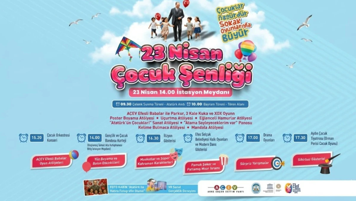 Efes Selçuk Belediyesi 23 Nisan Ulusal Egemenlik ve Çocuk Bayramını, İstasyon Meydanı’nda düzenlenecek dev bir şenlikle kutlanmaya hazırlanıyor. "Çocuklar Özgürdür" temasıyla gerçekleşecek etkinlikte, minikler unutulmaya yüz tutmuş sokak oyunlarıyla bayramın tadını çıkaracak.