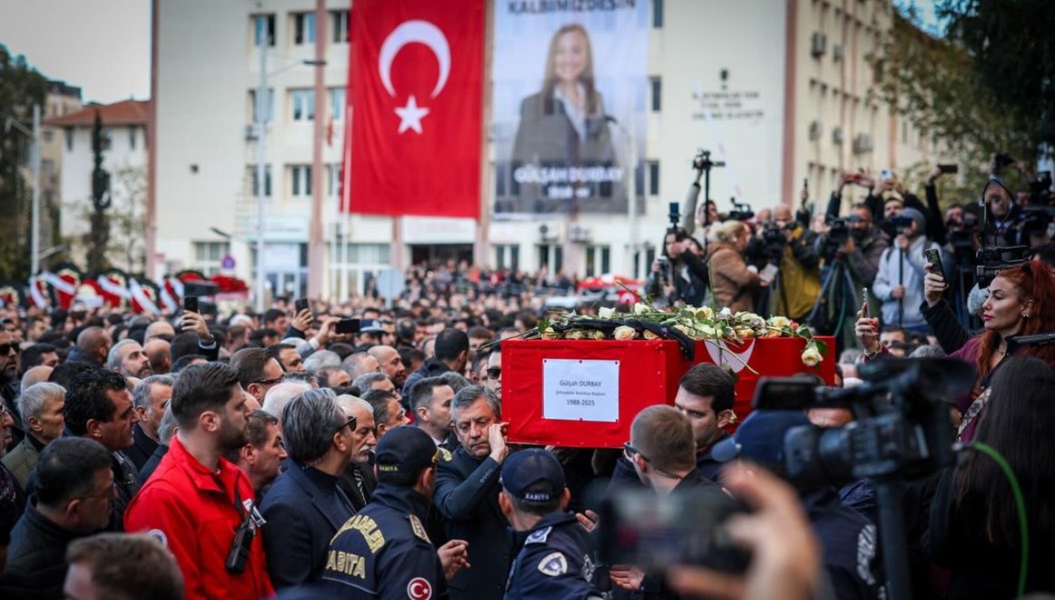 Cumhuriyet Halk Partisi Gençlik Kolları’nda uzun süre görev alan, Manisa’nın ilk kadın belediye başkanı Şehzadeler Belediye Başkanı Gülşah Durbay son yolculuğuna uğurlanıyor. Şehzadeler Belediyesi’nin önünde gerçekleşen törende Durbay’ın naaşını kırmızı yelekli CHP Gençlik Kolları üyeleri karşıladı. Durbay’ın naaşı binlerce Manisalının alkışları eşliğinde belediye binası önünde hazırlanan alana yerleştirildi. Törene Durbay’ın babası Osman Durbay ile annesi Fatma Durbay, kardeşi Nevsale Durbay Karataş, CHP Genel Başkanı Özgür Özel, İzmir Büyükşehir Belediye Başkanı Dr. Cemil Tugay ile eşi Öznur Tugay, Ankara Büyükşehir Belediye Başkanı Mansur Yavaş, İstanbul Büyükşehir Belediyesi Başkan Vekili Nuri Aslan, İstanbul Büyükşehir Belediye Başkanı Ekrem İmamoğlu’nun eşi Dilek İmamoğlu, Manisa Valisi Vahdettin Özkan, CHP yönetimi, belediye başkanları, milletvekilleri, siyasi parti temsilcileri ve binlerce Manisalı katıldı.