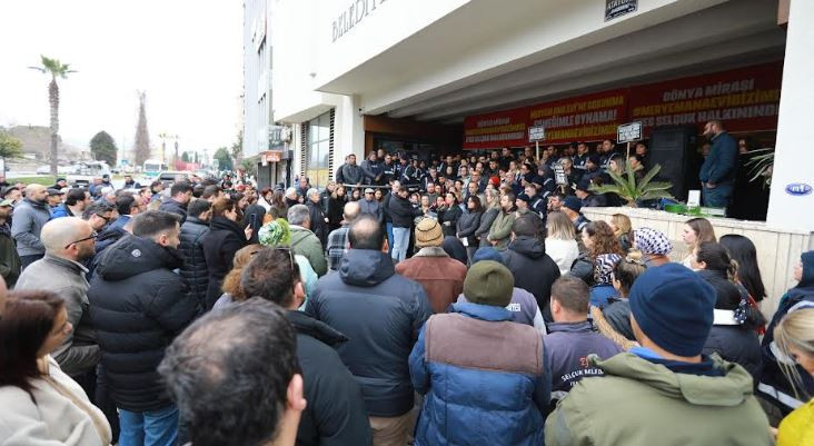 Efes Selçuk Belediyesi emekçileri adına Gülhan Ayhan tarafından belediye binası önünde okunan basın açıklamasında belediye emekçilerinin Meryem Ana Evi otopark gelirlerinin Efes Selçuk’ta kalması için 22 Kasım’da İstasyon Meydanı’nda basın açıklaması okumasıyla başlayan mücadele sürecini anlattı. Yürütmeyi durdurma talebinin reddedilmesinin belediye emekçilerinin yanı sıra Efes Selçuk halkını da yok sayan bir karar olduğunu belirten Gülhan Ayhan; "Bu yok saymaya karşı biz, yani Efes Selçuk Belediye emekçileri olarak dimdik ayakta durmaya devam edeceğiz. Başkanımızla birlikte mücadelemize devam edeceğiz. Susarak kabullenerek boyun eğerek değil gururla onurla haklılıkla direnmeye devam edeceğiz. Hukuksa hukuk, direnişse direniş ne yapılması gerekiyorsa onu yaparak Efes Selçuk’un hakkını savunmaya devam edeceğiz. Çünkü bu kabul edilebilir bir sonuç değildir. Biz ekmeğimizden, aşımızdan, Efes Selçuk’un geleceğinden vazgeçmedik, vazgeçmiyoruz, vazgeçmeyeceğiz” dedi.