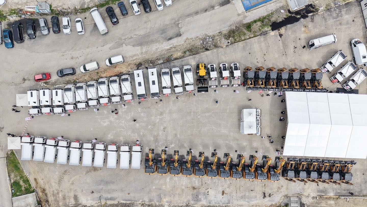 Teslim edilen hizmet araçları; 25 damperli kamyon, 22 çöp kamyonu, 13 kazıcı yükleyici, 11 paletli ekskavatör, 5 arazöz, 3 yol süpürme aracı ve daha pek çok hizmet aracından oluştu.