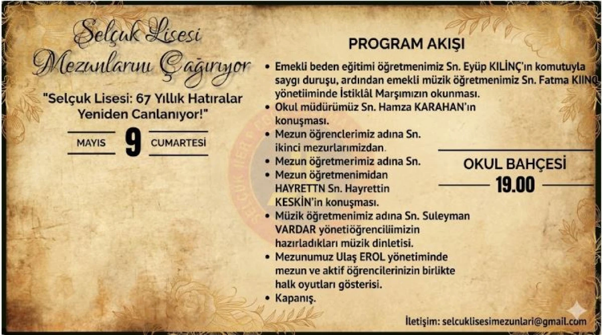 İletişim: selcuklisesimezunlari@gmail.com
