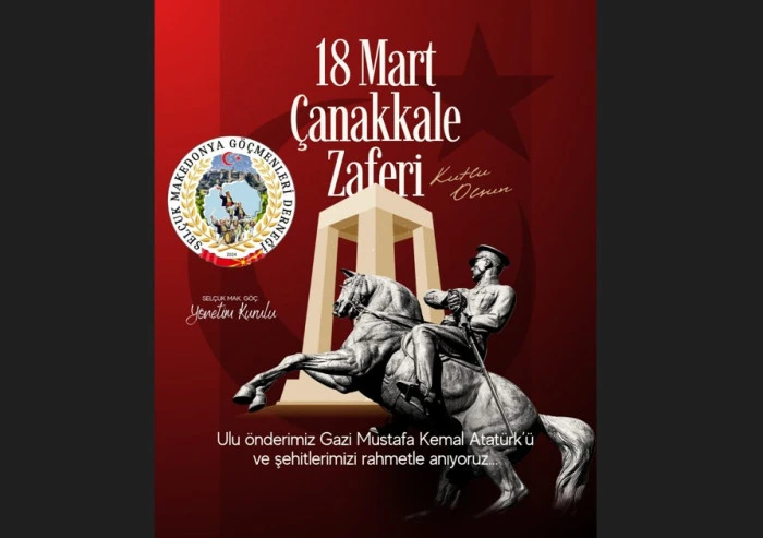 Selçuk Mak. Göç. Yönetim Kurulu Başkanı Kaan Uçak, 18 Mart Şehitleri Anma Günü ve Çanakkale Deniz Zaferi’nin 111. yıl dönümü vesilesiyle bir kutlama mesajı yayımladı. Uçak, Çanakkale Zaferi’ni Türk milletinin tarih boyunca yazdığı en büyük destanlardan biri olarak nitelendirerek, vatan savunmasındaki fedakarlığa vurgu yaptı.