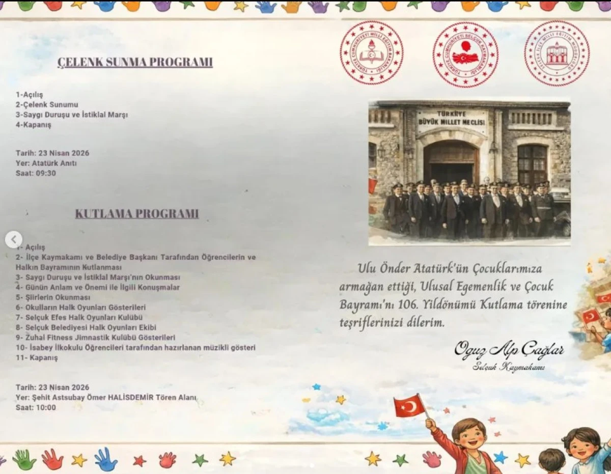 Selçuk Kaymakamı Oğuz Alp Çağlar, yayımladığı davet mesajında tüm ilçe halkını bu coşkuya ortak olmaya çağırdı. Çağlar mesajında, "Geleceğimizin teminatı çocuklarımızın bayram sevincine ortak olmak için siz değerli halkımızı aramızda görmekten mutluluk duyarız. Tüm halkımız davetlidir," ifadelerini kullanarak bayramın birleştirici gücüne vurgu yaptı.